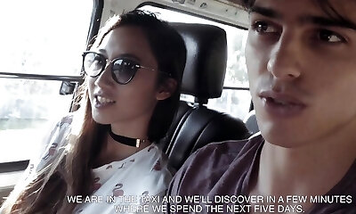 Busty Brunette Fucks Hairy Asian on the Beach During a Business Trip