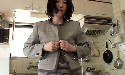 Horny Japanese Step Mom Fucks Her Big Tits on the Counter