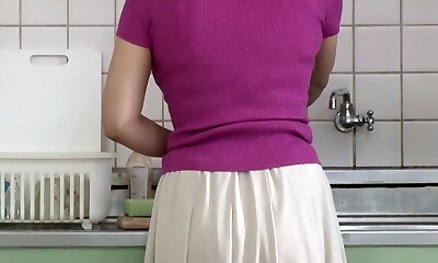 Japanese MILF Teases in Kitchen Encounter