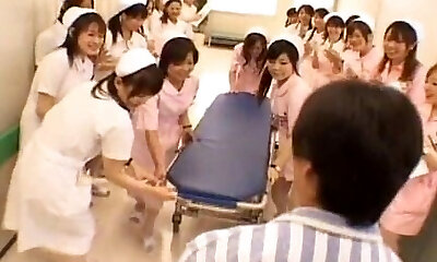 Asian Nurses Take Turns Fucking Cock on Blue Gurney!