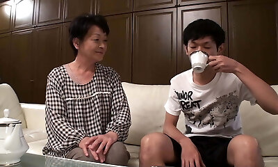 Busty Asian Granny Gets Her Cock Sucked Dry by Young Stud