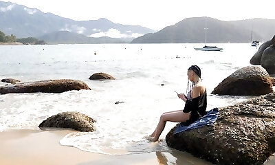 Luara Amaral's Hot Latin Beach Blowjob: Cumming Hard on the Rocks!